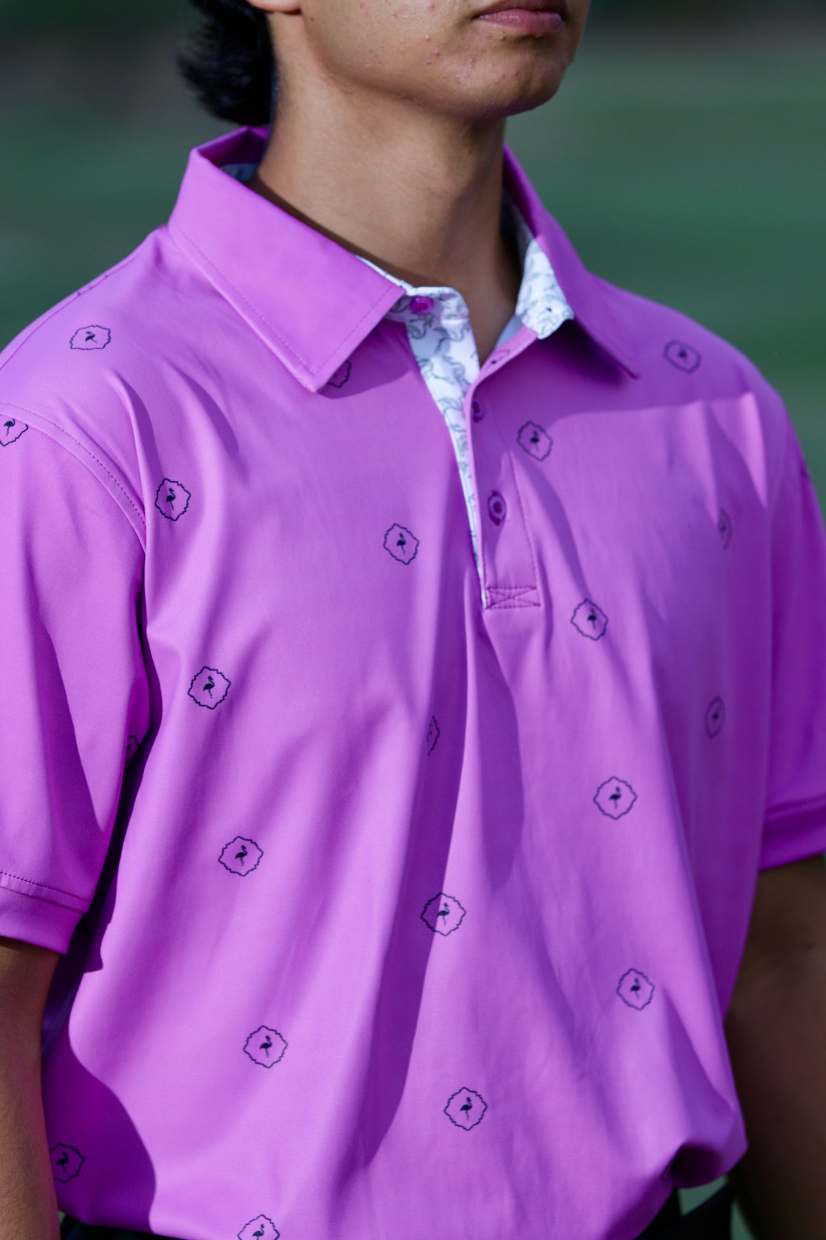 Stand out on the course with this vibrant Pink Flamingo Golf Polo. Designed with lightweight, breathable fabric for all-day comfort, it combines performance and style. Featuring a playful Flamingo Alamo design in a modern athletic fit, this polo keeps you cool and confident from the first tee to the last putt.